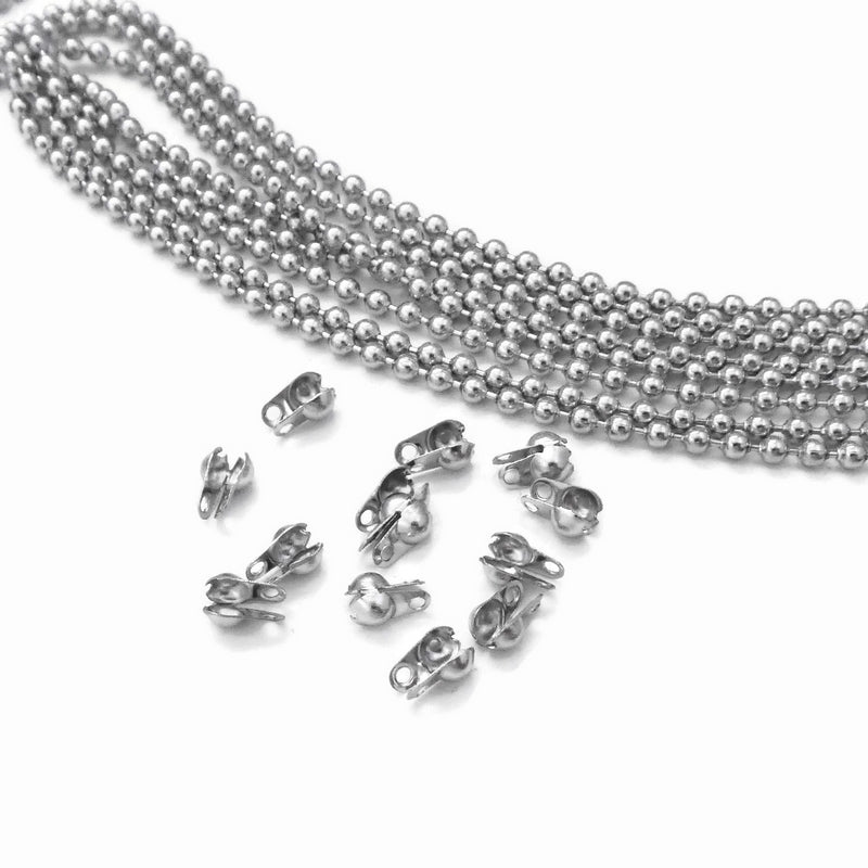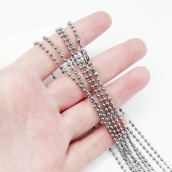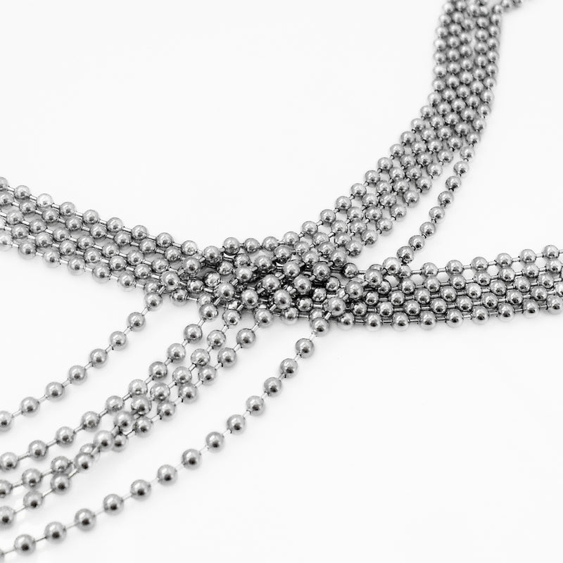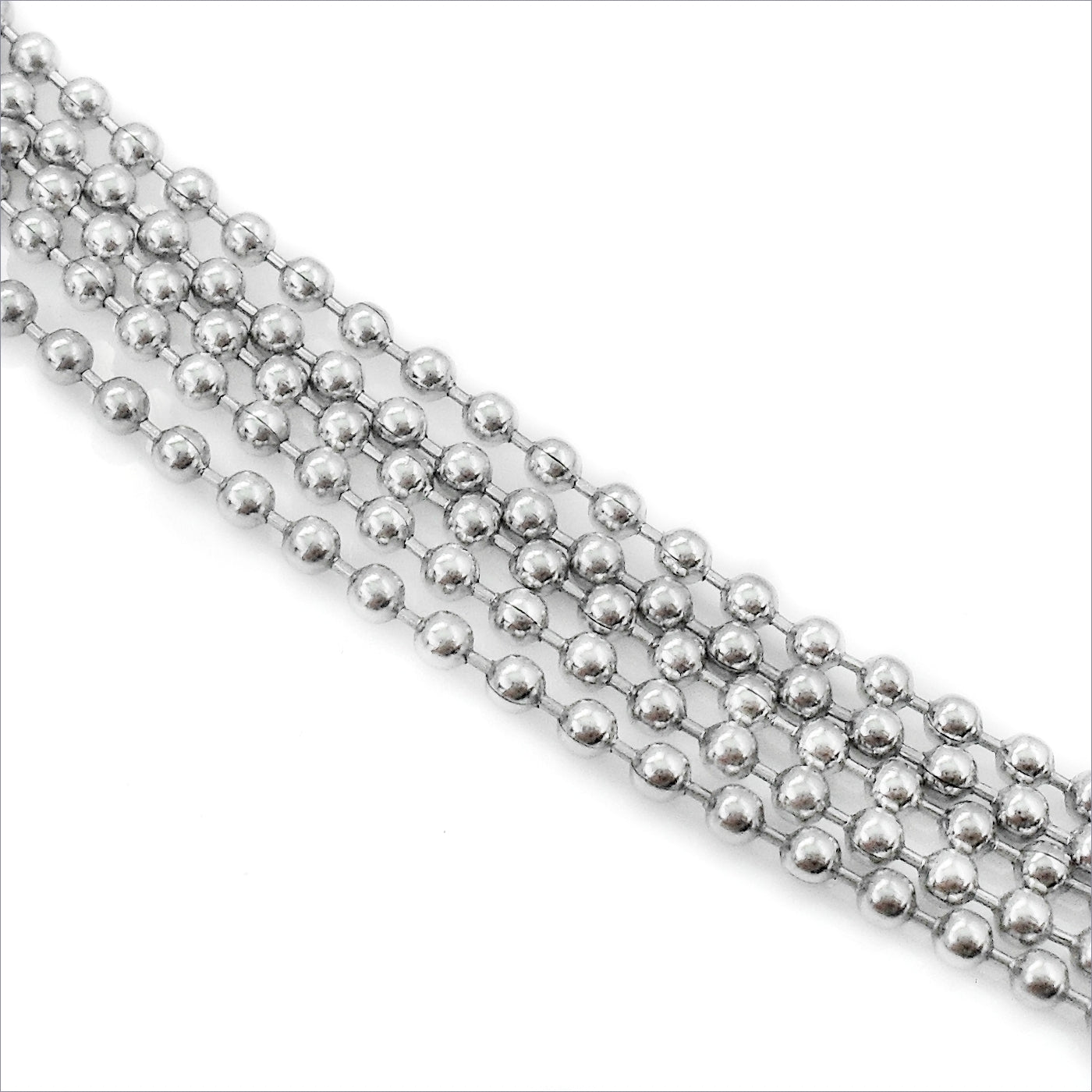 A 5-metre length of stainless steel ball chain, dark silver in tone and with a semi-polished finish.