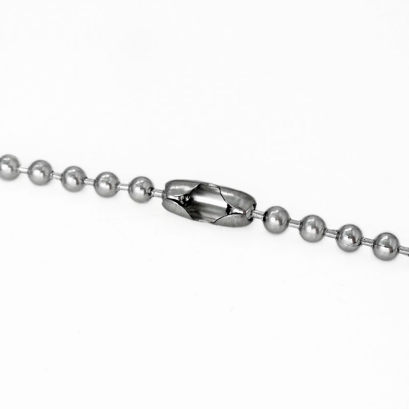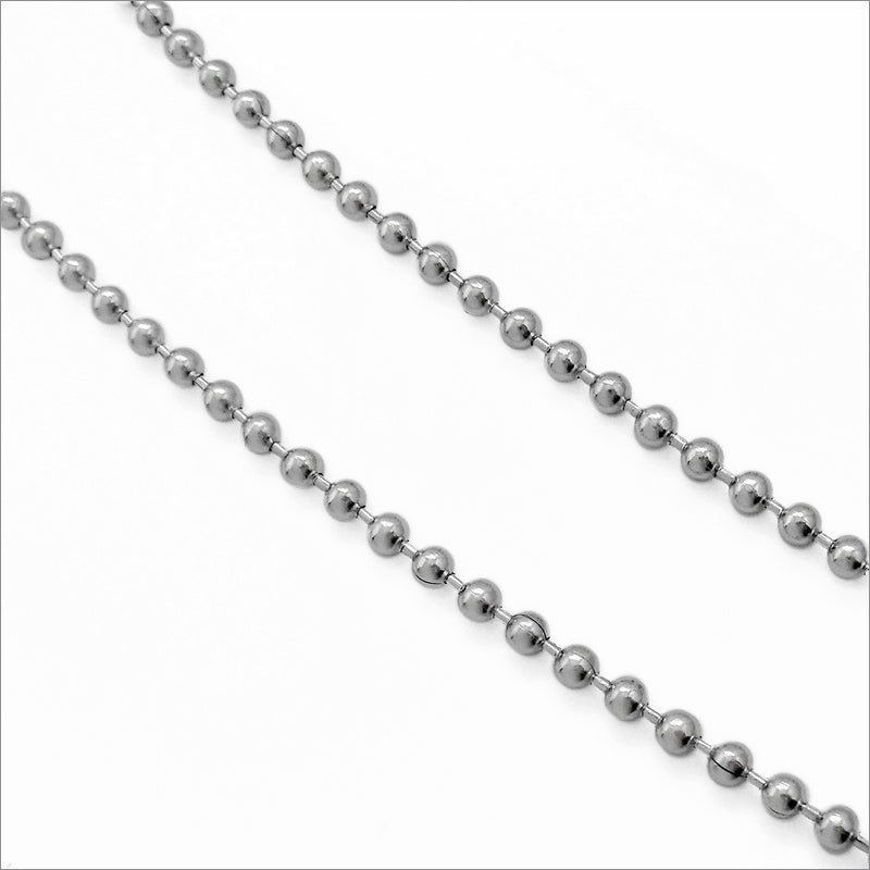 A 5-metre length of stainless steel ball chain, dark silver in tone and with a semi-polished finish.