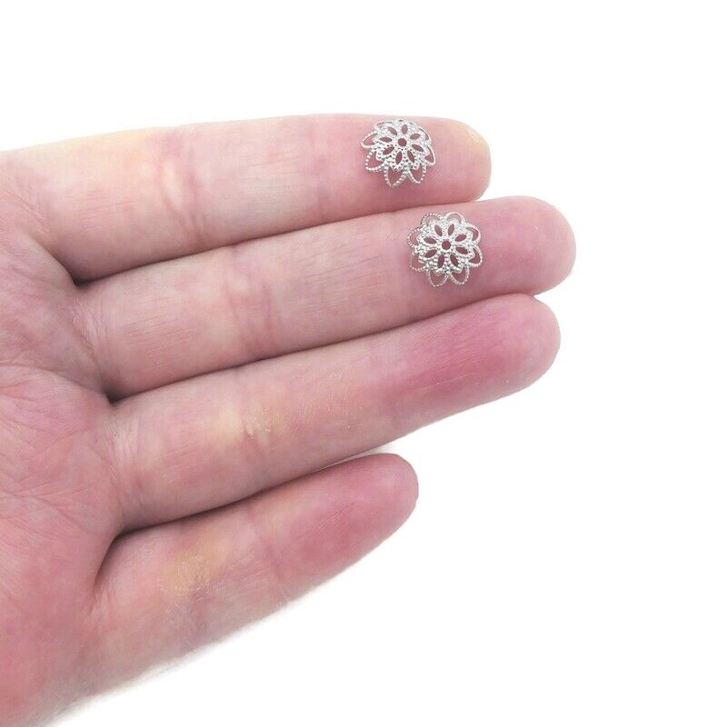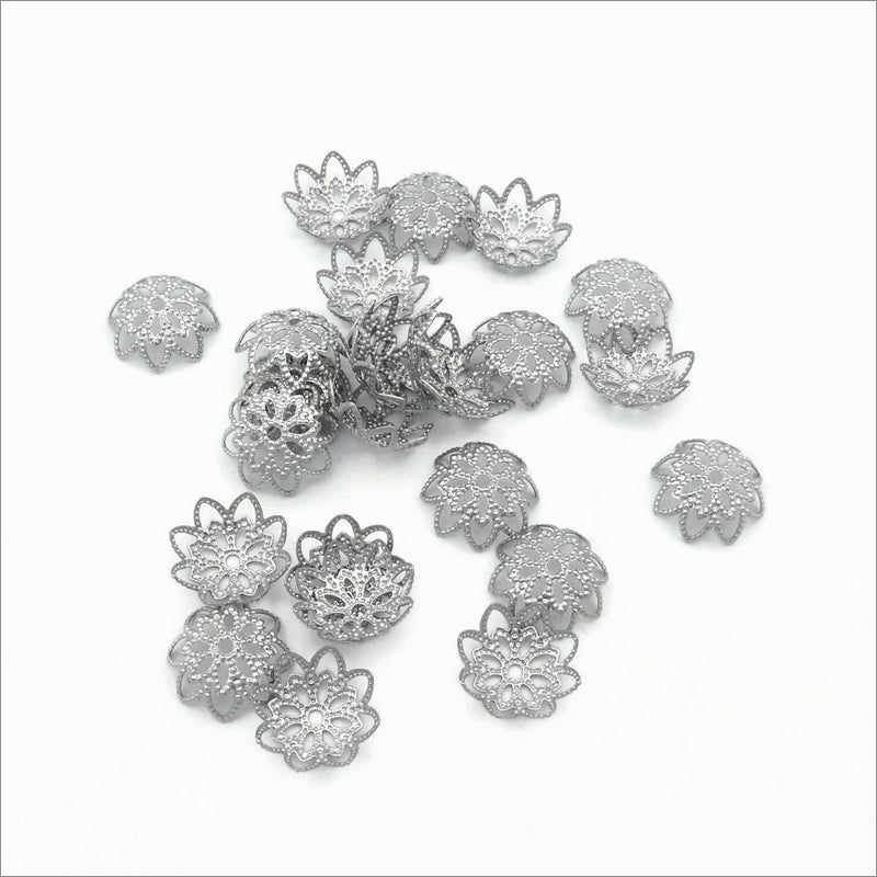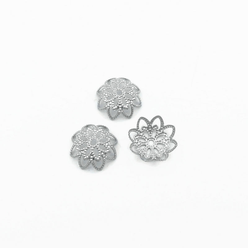 100 Stainless Steel 10mm Embossed Filigree Bead Caps
