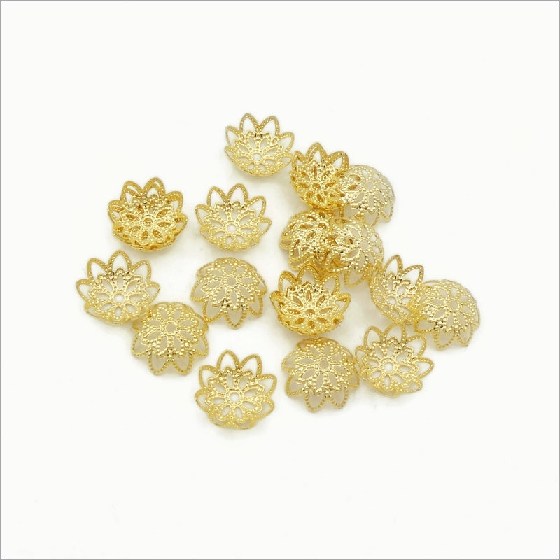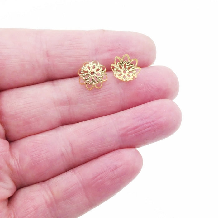 20 Gold Tone Stainless Steel 11mm Embossed Filigree Flower Bead Caps