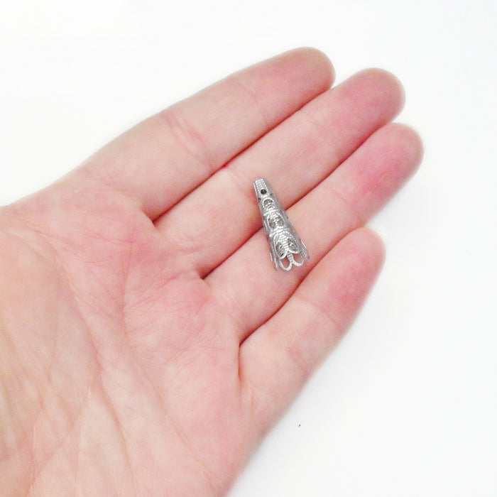 20 bead cones made from 316 grade stainless steel - these are made from a single piece curled into shape, and have a visible seam on one side.