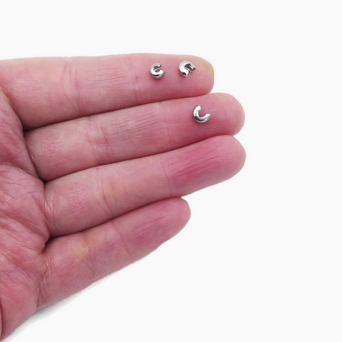 Stainless steel crimp covers, available in packs of 25 or 50 pieces.