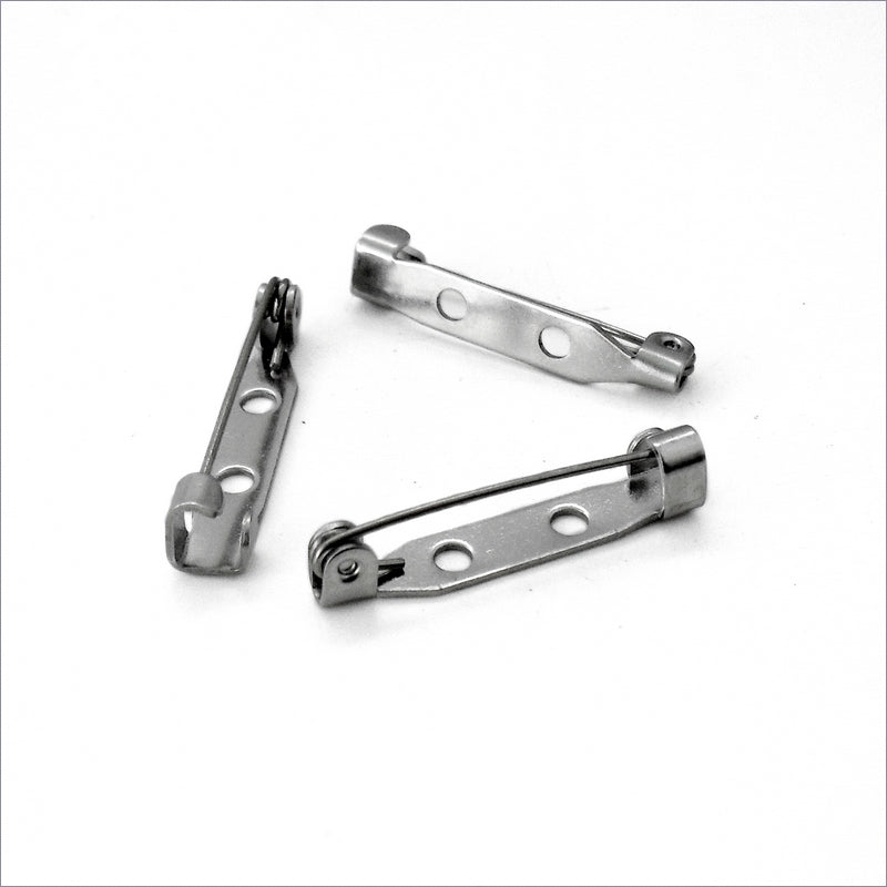 15 brooch backs, with a simple pin and fold-over catch - create your own brooches by attaching cabochon trays or other findings.