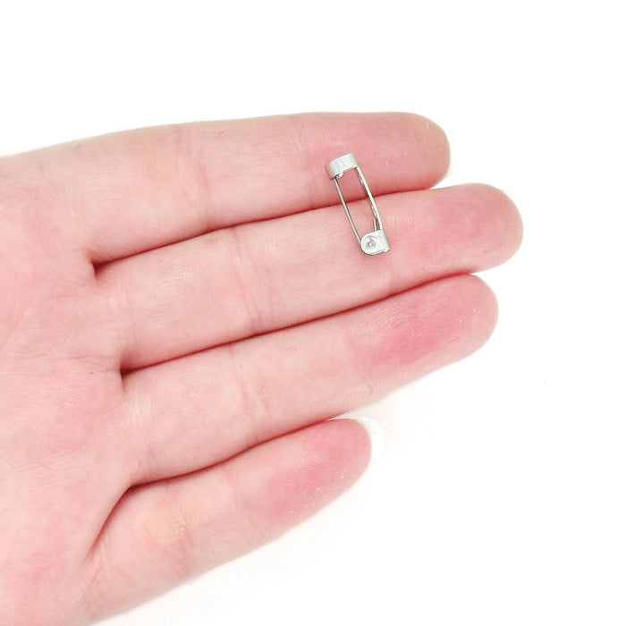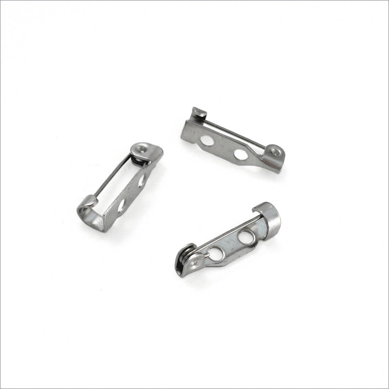 20 brooch backs, with a simple pin and fold-over catch - create your own brooches by attaching cabochon trays or other findings.