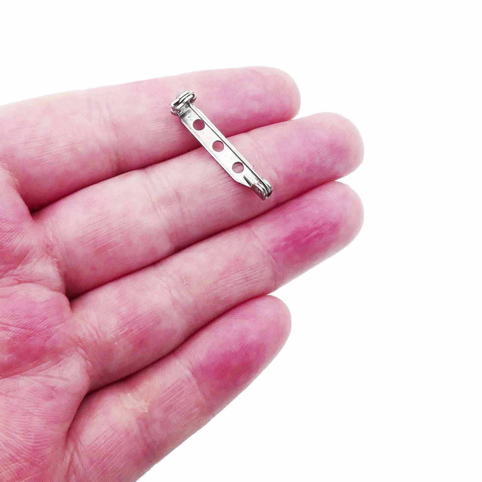 20 brooch backs, with a pin and rotating lock to keep it in place - create your own brooches by attaching cabochon trays or other findings.