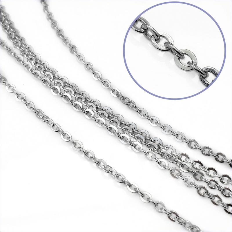 5m Fine Stainless Steel Flat Link Cable Chain 2mm x 1.5mm x 0.4mm Soldered Links