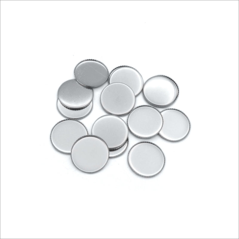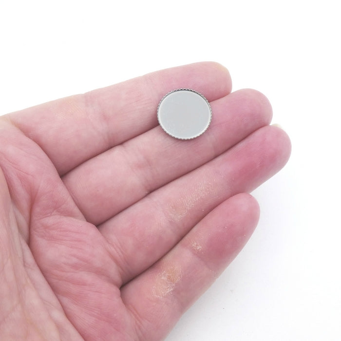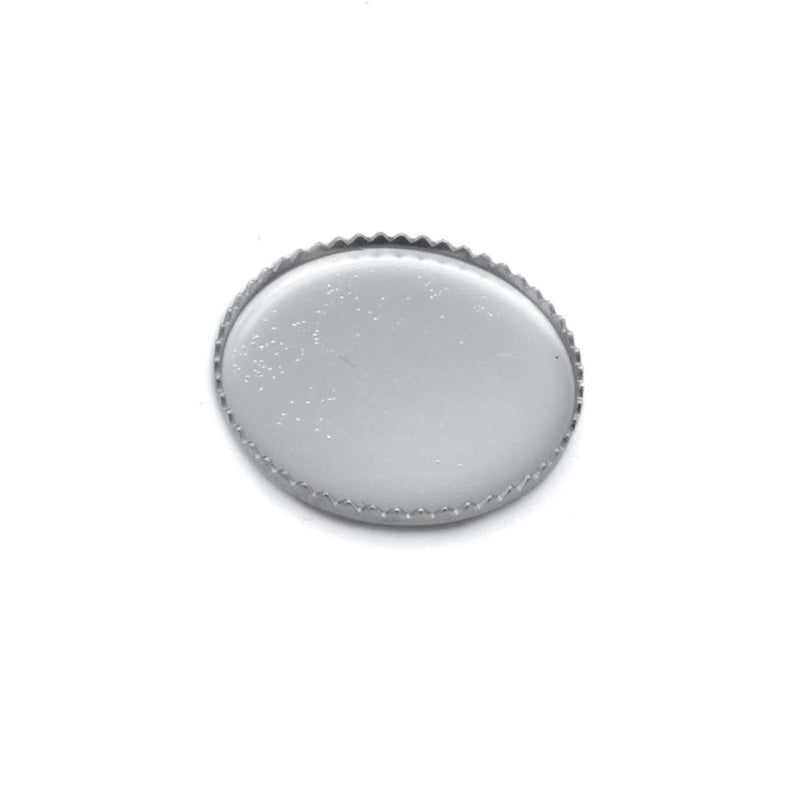50 stainless steel trays with bottlecap style edging, to fit 15mm round cabochons. These have no bail or connector loops, making them perfect for other projects like brooch making.
