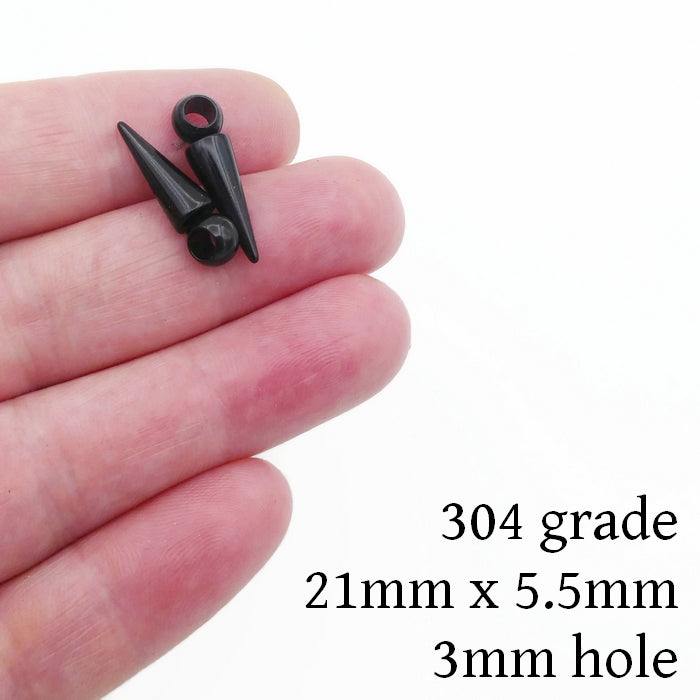 10 Black Stainless Steel 21mm Cone Spike Charms