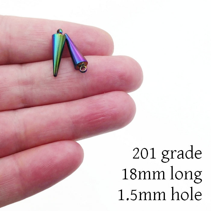 1 review10 Rainbow Anodized Stainless Steel 18mm Cone Spike Charms - is backordered and will ship as soon as it is back in stock.