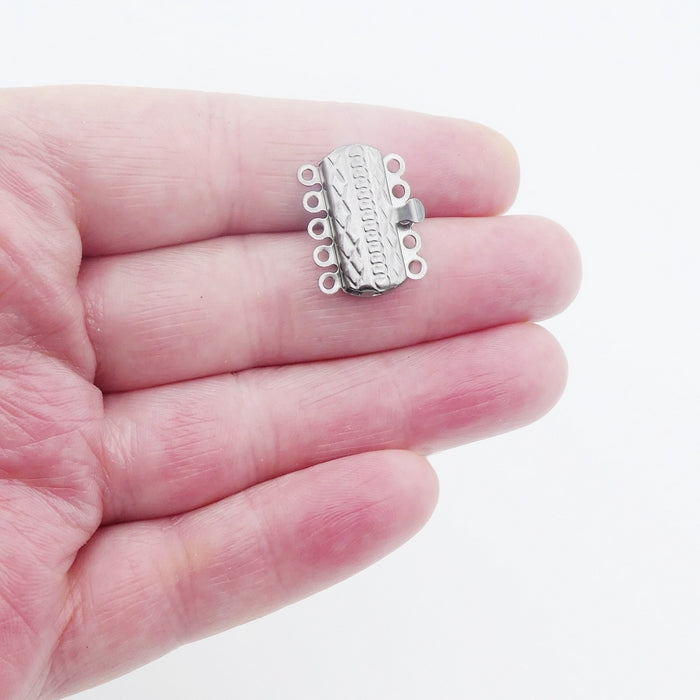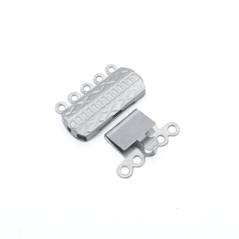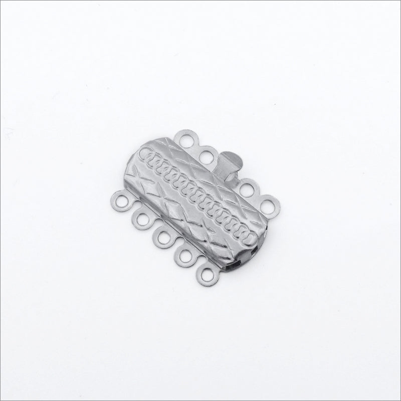 Ten light-weight stainless steel 5-strand box clasps, with an embossed pattern on the top.