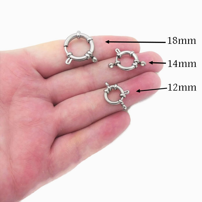 Two stainless steel clasps, available in three different sizes (each sold separately).