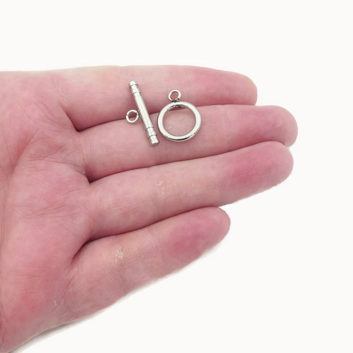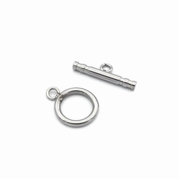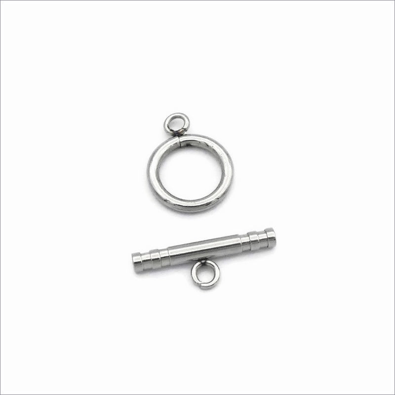Four stainless steel toggle clasp sets, featuring two decorative ridges at each end of the bar.