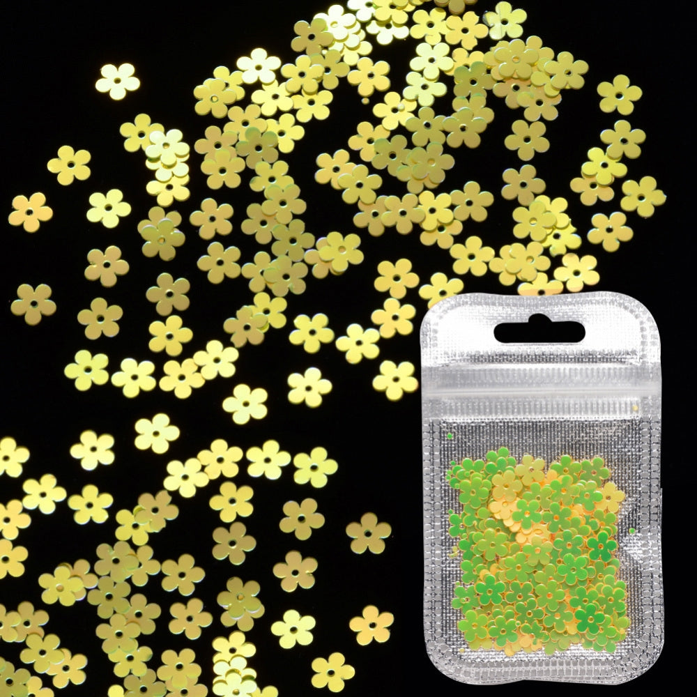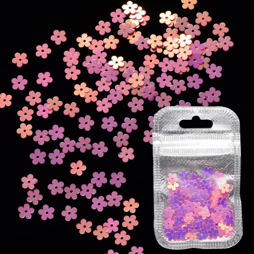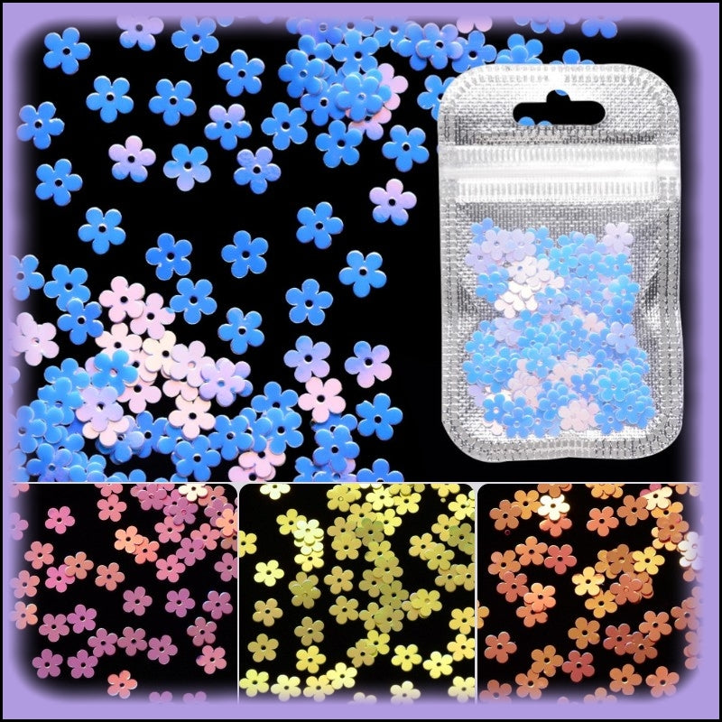A set of four coloured flower sequins, with an AB coating on one side - these can be used with resin or many other craft projects.