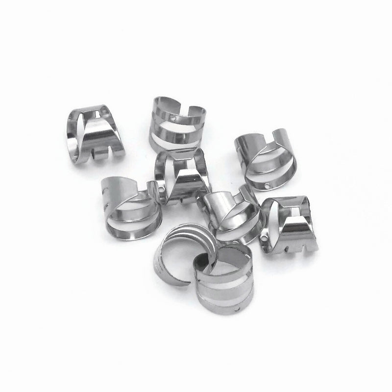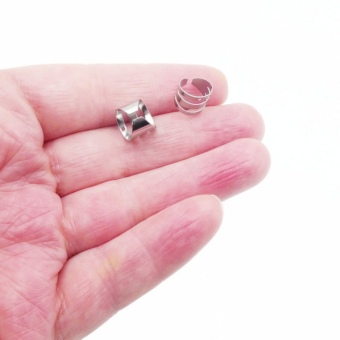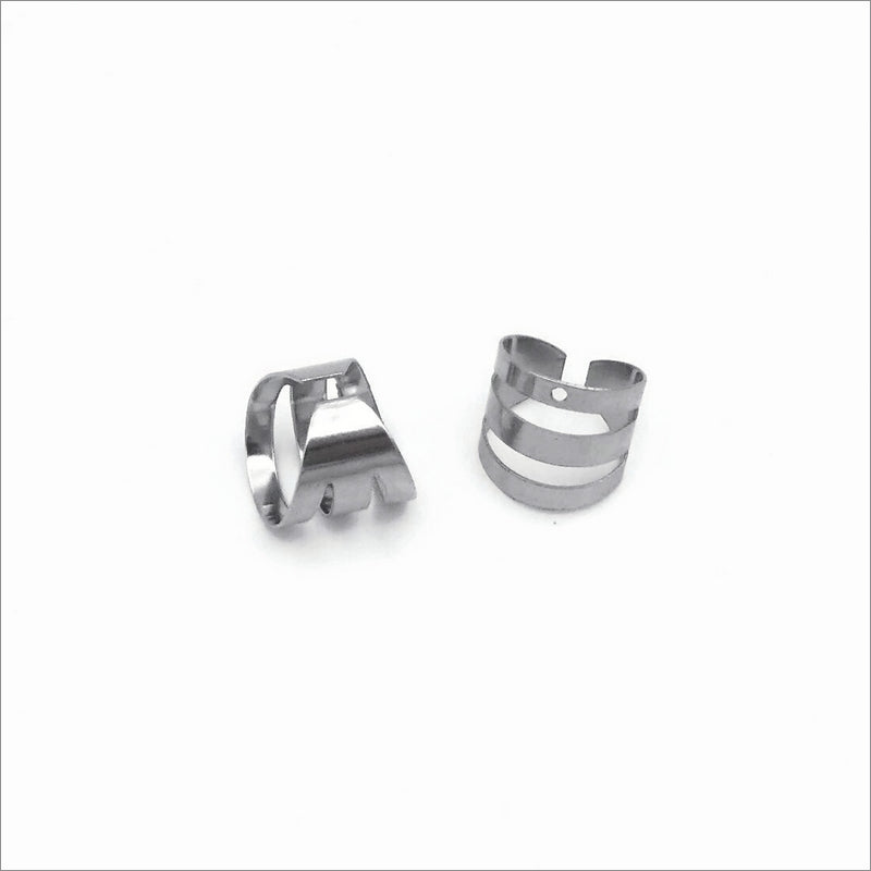 A light-weight earring cuff, with some adjustability, and featuring a hole for attaching additional components.