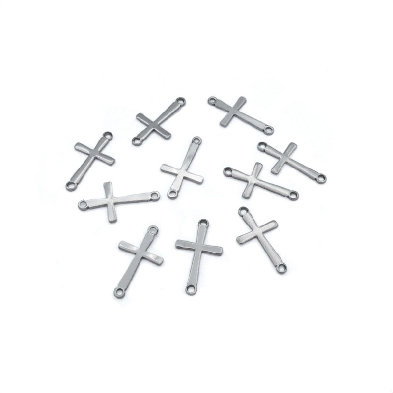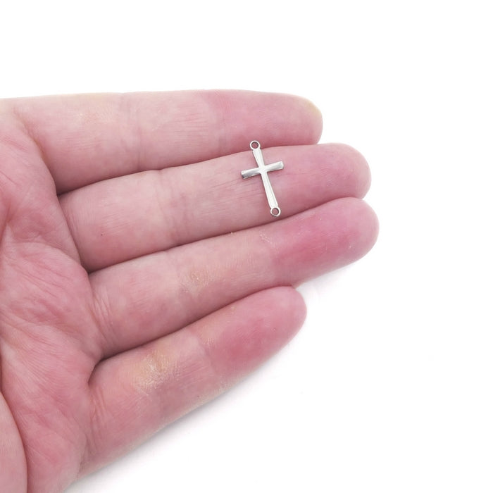 25 flat stainless steel cross connectors, in a smaller size that makes them suitable for earrings, chain links and a variety of other craft projects.