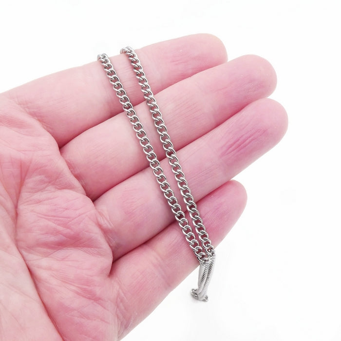 5 metres of stainless steel curb chain, with a twisted link style, and with open (unsoldered) links.