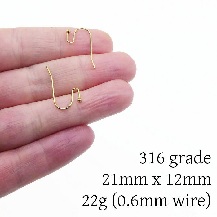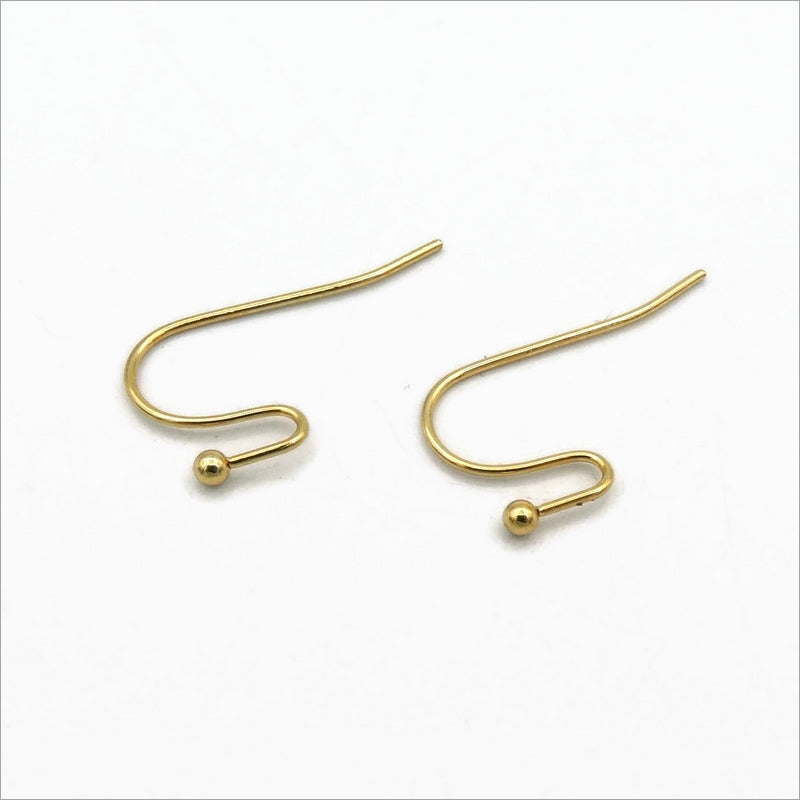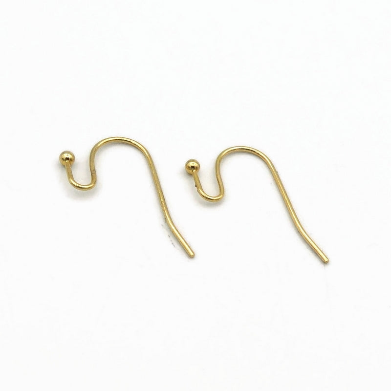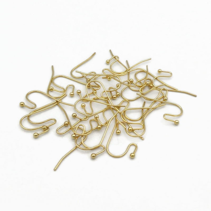 20 pairs of stainless steel French hook earwires, with an open loop and ball-pin end. Attachments can be placed in the nook and the loop gently closed to secure them in place.