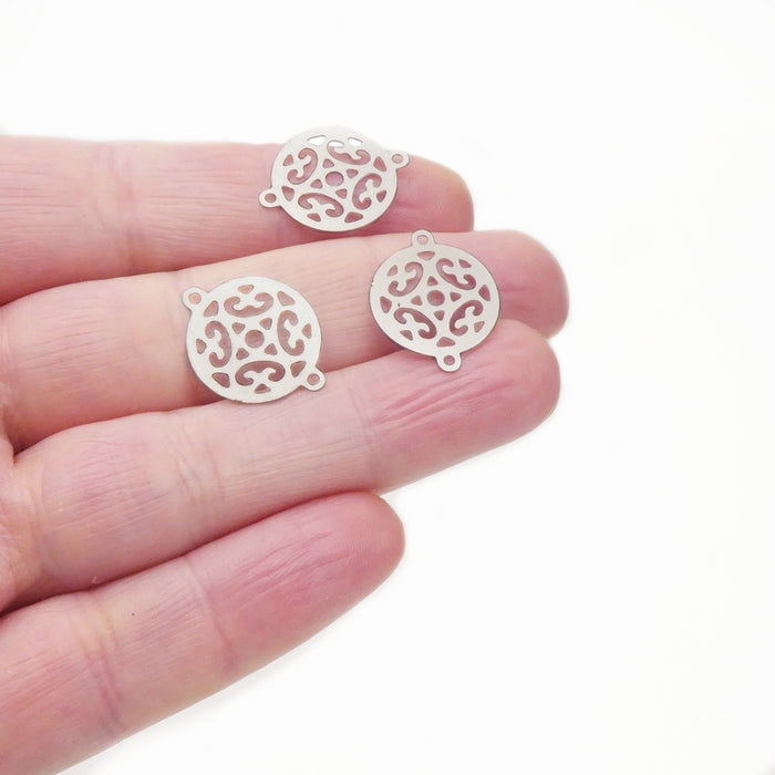 20 Stainless Steel Thin Round Filigree Connector Links - is backordered and will ship as soon as it is back in stock.