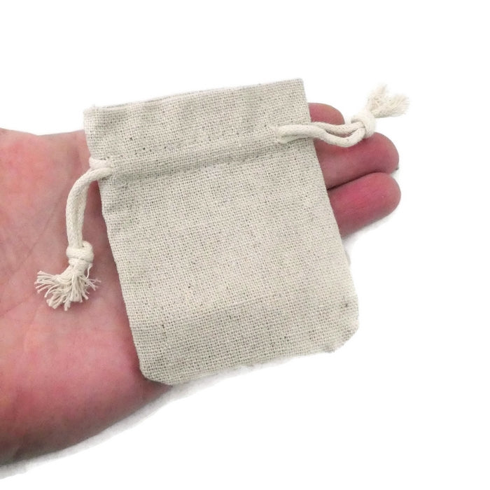Ten quality cotton canvas gift bags, in a light natural beige colour, perfect for small jewellery items or accessories.