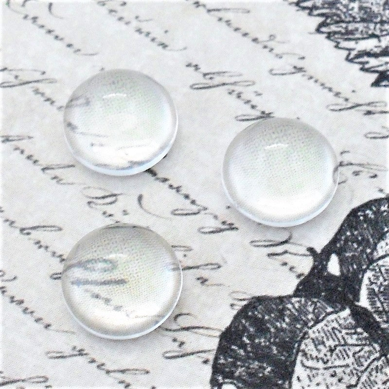 50 clear glass round cabochons, measuring 10mm in diameter and with a low dome.