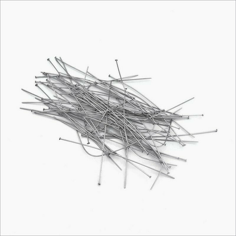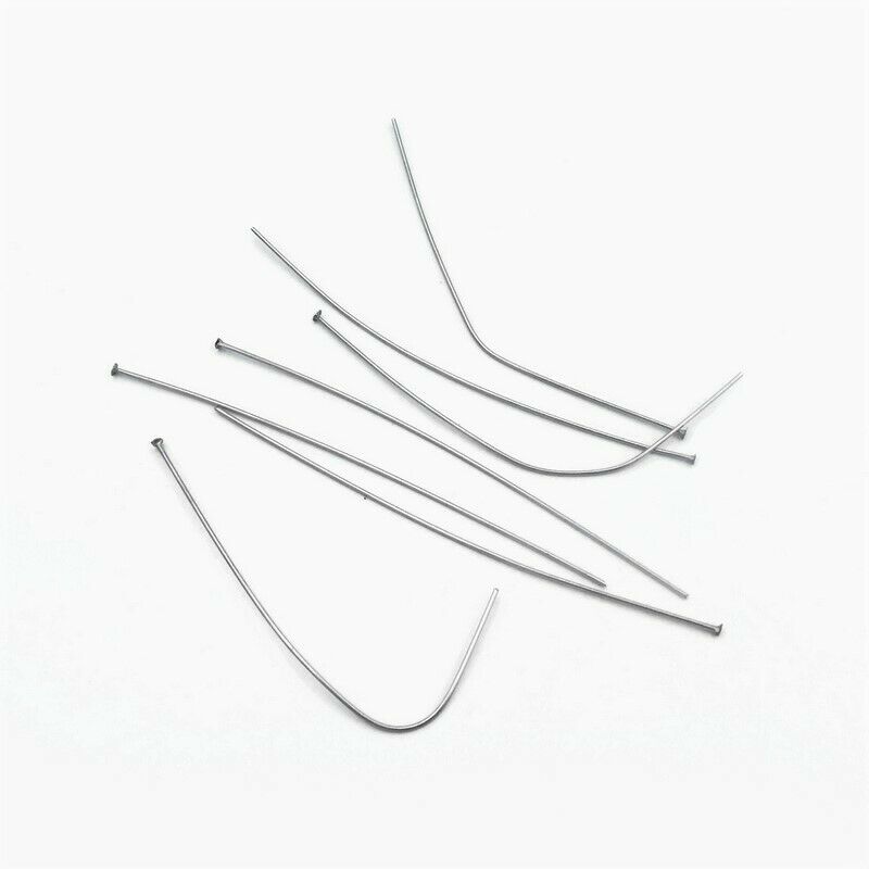 100 unsorted stainless steel head pins, in an extra long 75mm length - these can require straightening (nylon jaw pliers recommended).