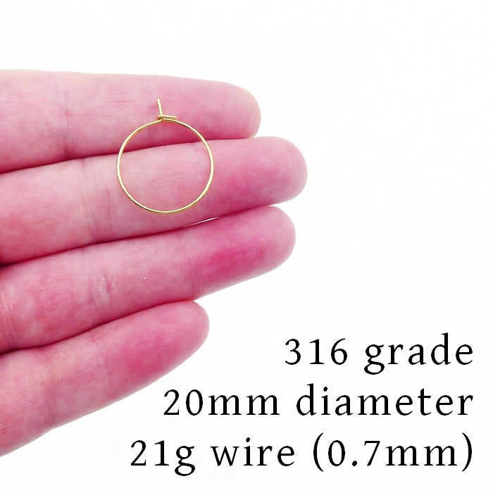 These hoops are made from 316 grade spring temper wire - this helps them to hold their shape firmly, but also makes the wire a bit more brittle. They will require a little extra care if manipulating the wire to add beads etc, since it's not as pliable as other materials and can sometimes break