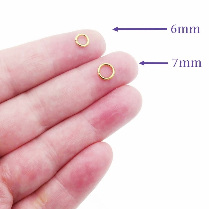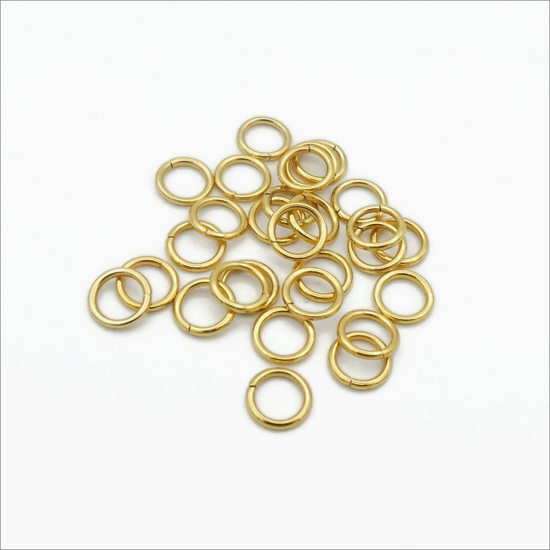 100 machine cut stainless steel jump rings, electroplated in a durable and glossy gold tone.