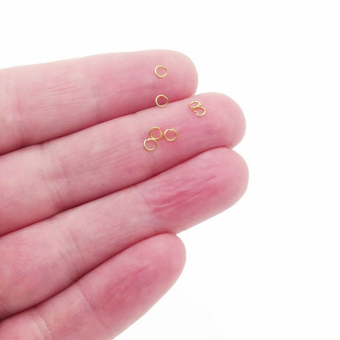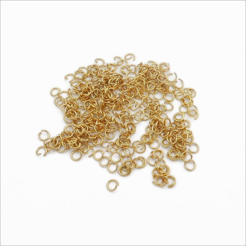 500 tiny, fine gauge stainless steel jump rings, with a durable gold tone plating.