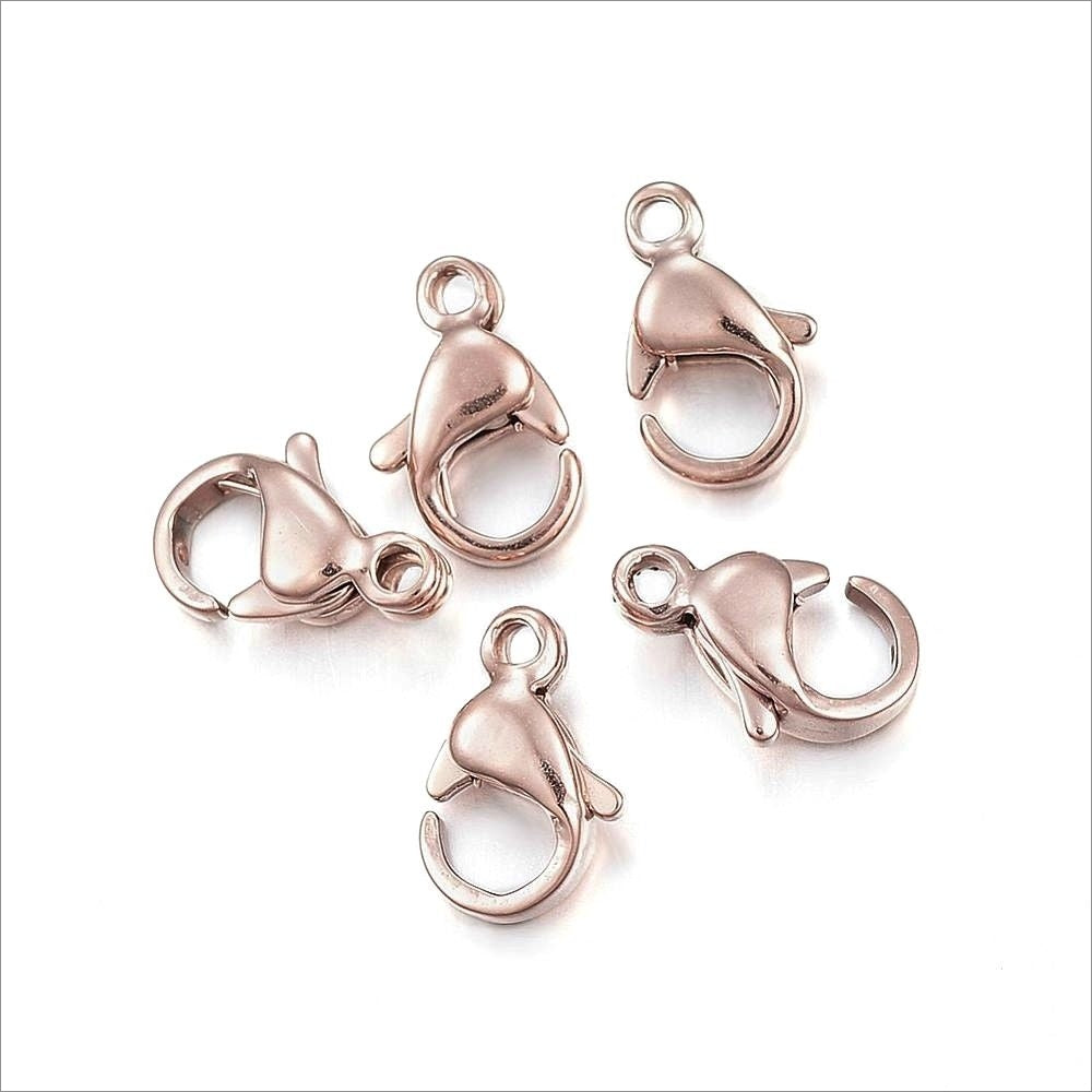 10 Stainless Steel Rose Gold Tone 12mm Lobster Claw Parrot Clasps