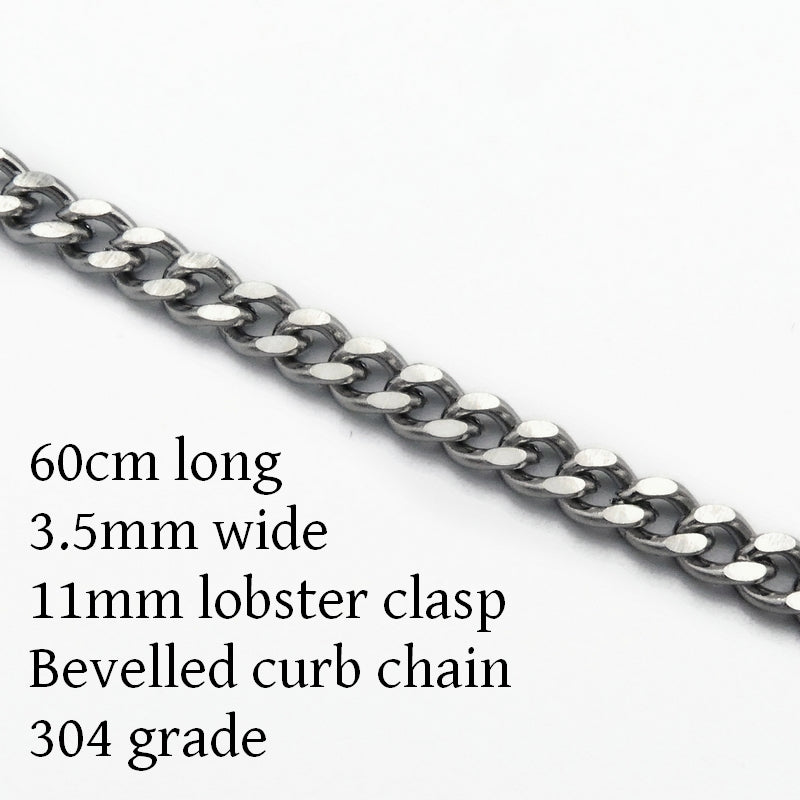 2 Stainless Steel 60cm Bevelled Curb Chain Necklaces 3.5mm Wide - is backordered and will ship as soon as it is back in stock.