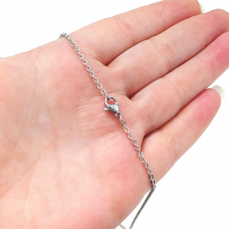 5 necklaces strands, made from a fine 2mm flat link cable chain with soldered links, ready for attaching charms and pendants and available in three different lengths (each length sold separately in lots of 5).