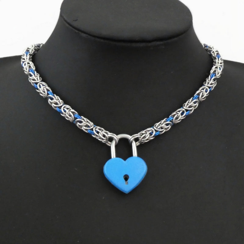 Blue Heart Padlock Choker Necklace