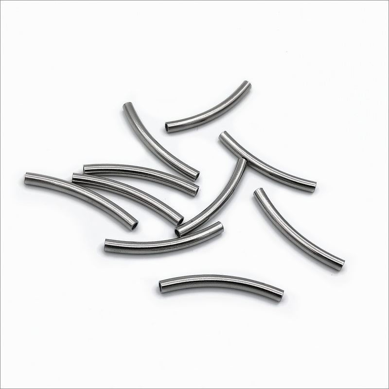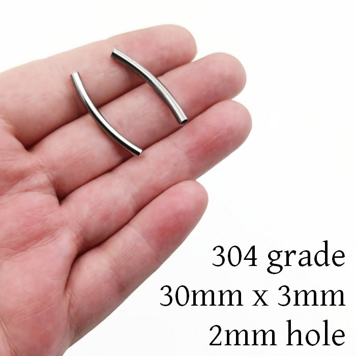 Ten stainless steel curved beads, 30mm long (or 32mm measuring along the curve),