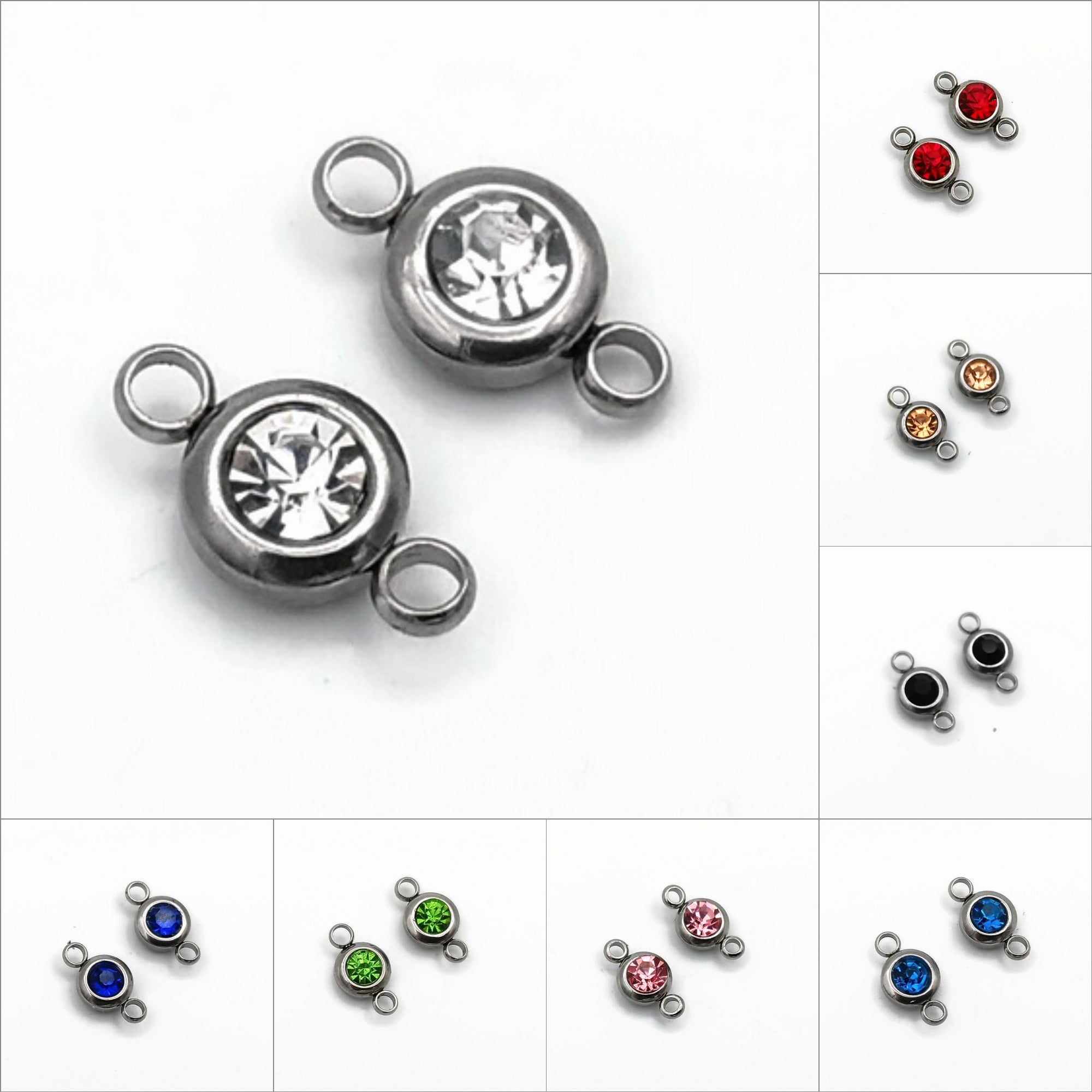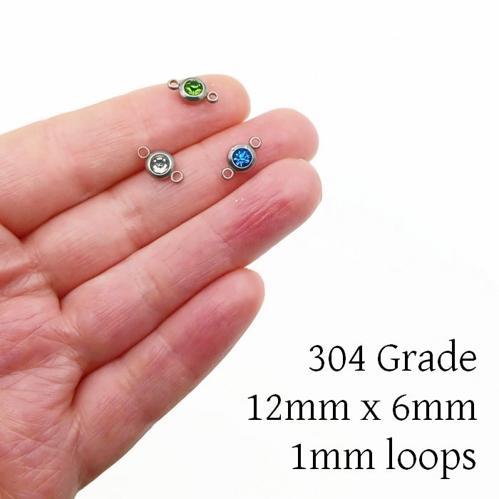 10 Stainless Steel & Glass Crystal Rhinestone Connectors