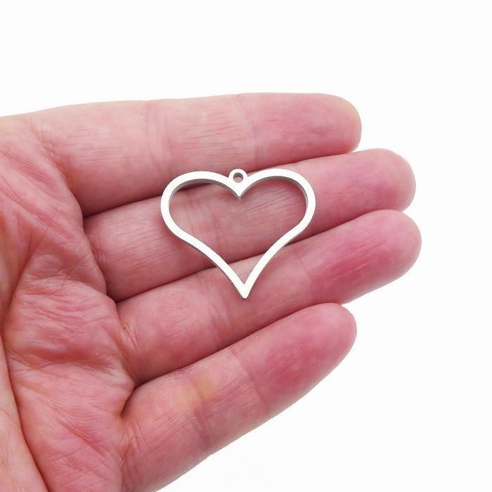 3 Stainless Steel Narrow Heart Shape Open Back Bezel Settings for Resin Pendants