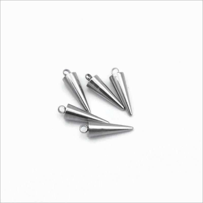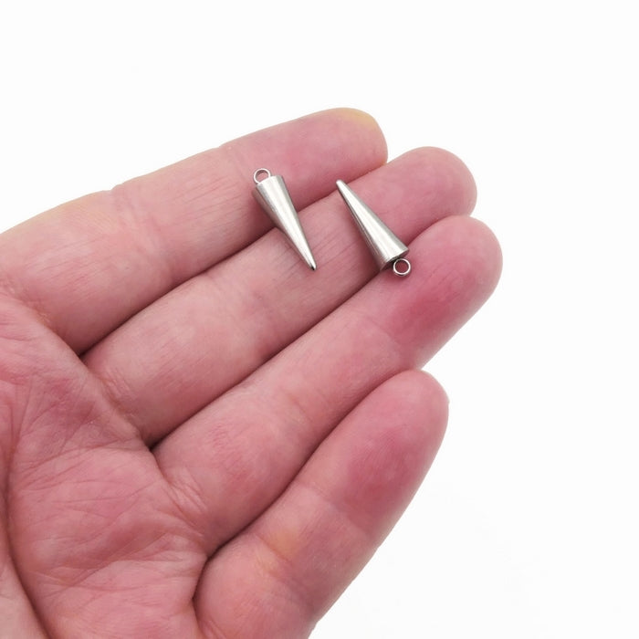 Medium sized cone-shaped spike pendants - made from solid steel with a rounded tip, available in lot sizes of 10 or 25pcs.