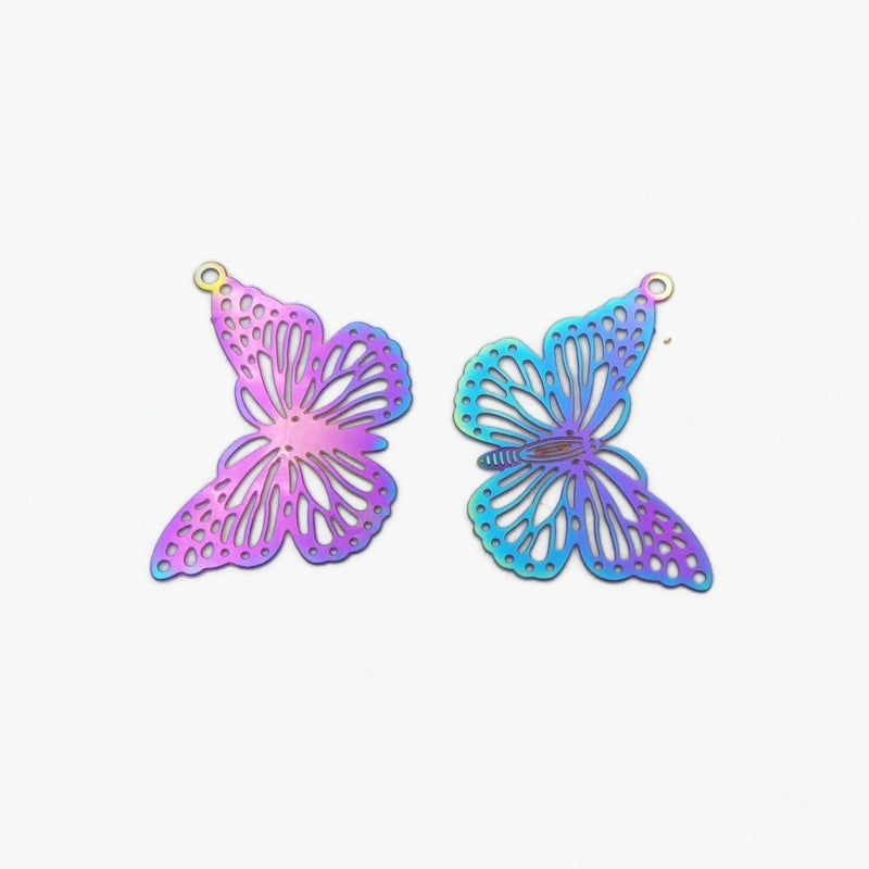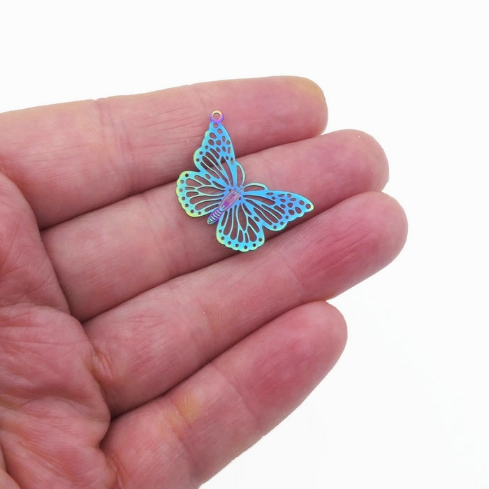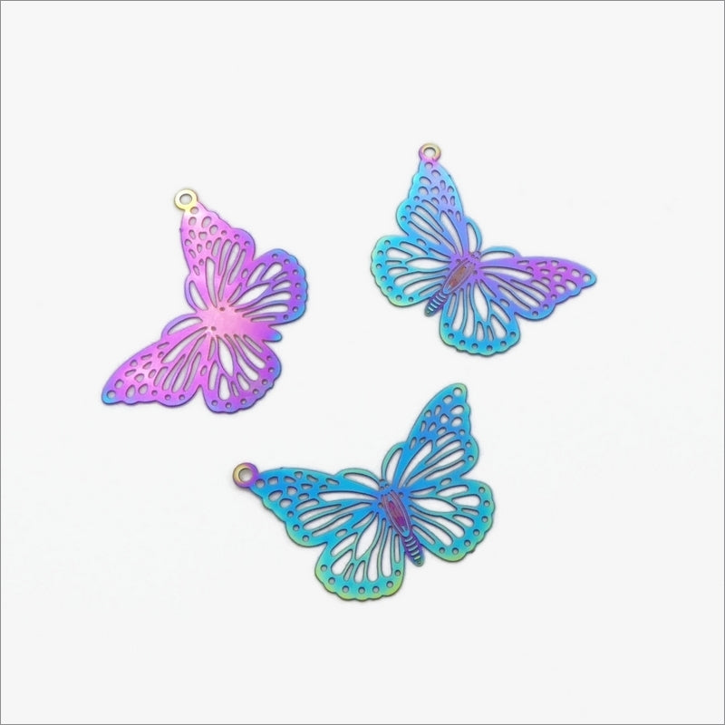 10 Rainbow Anodized Stainless Etched Butterfly Pendant Stampings