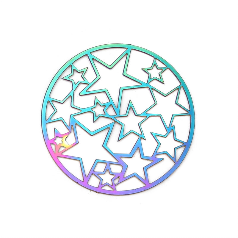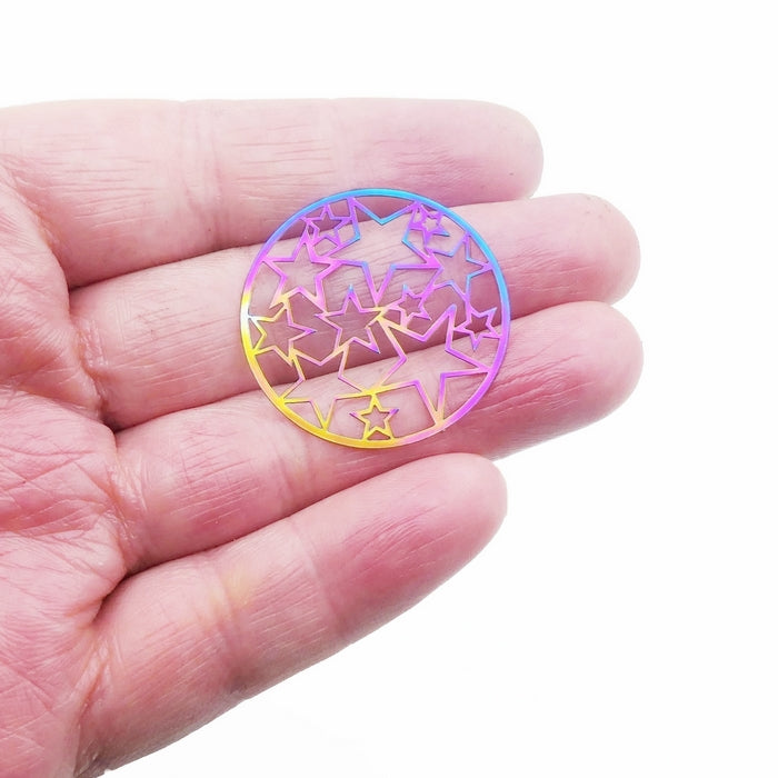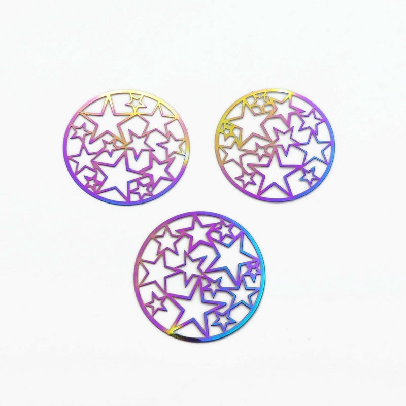 10 Rainbow Anodized Stainless Steel Round Star Pattern Stampings