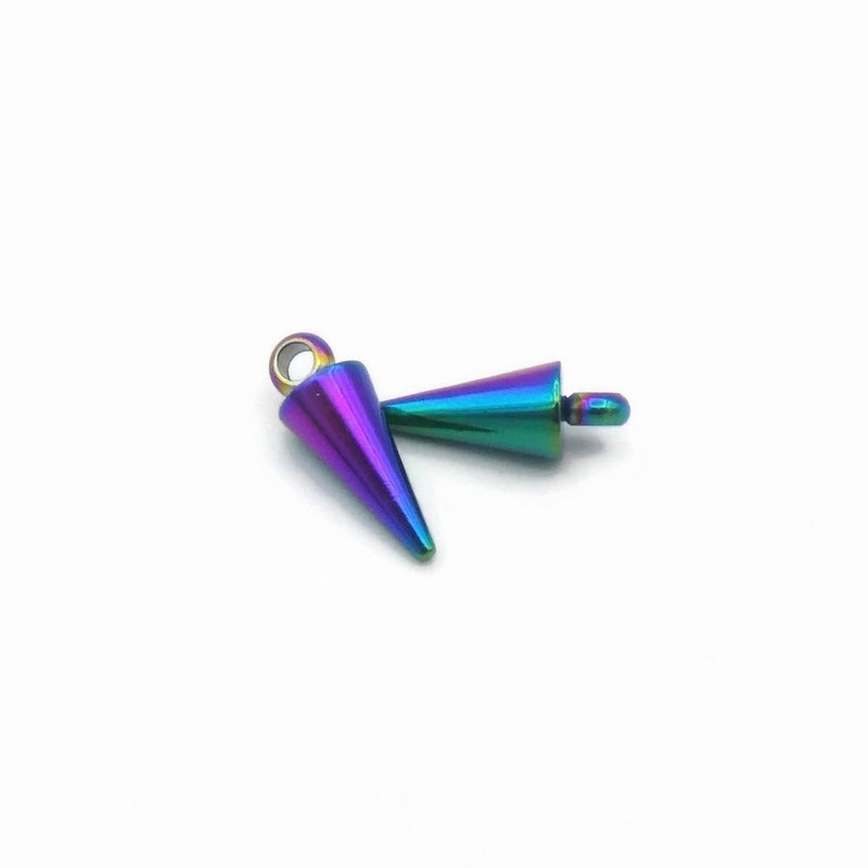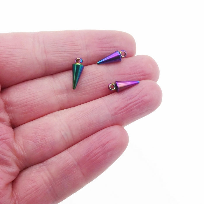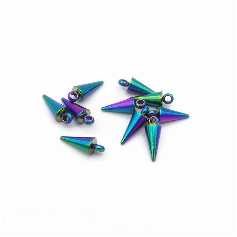 10 Rainbow Anodised Stainless Steel 13mm Cone Spike Charms