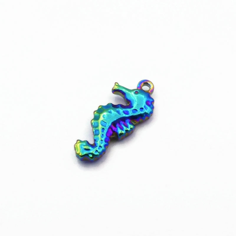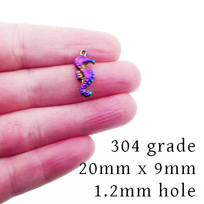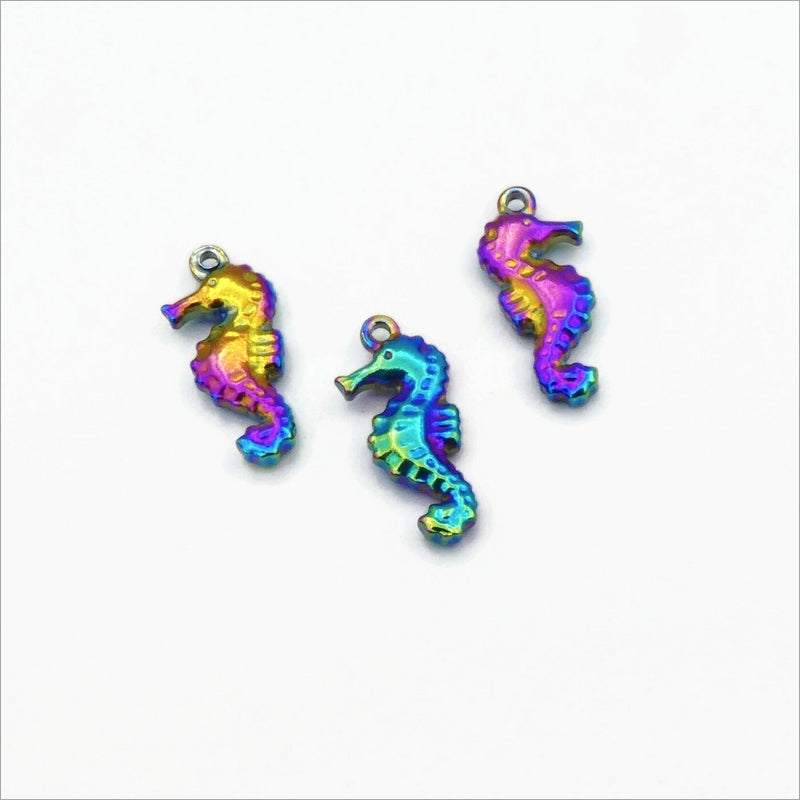 5 Rainbow Anodized Stainless Steel Seahorse Charms