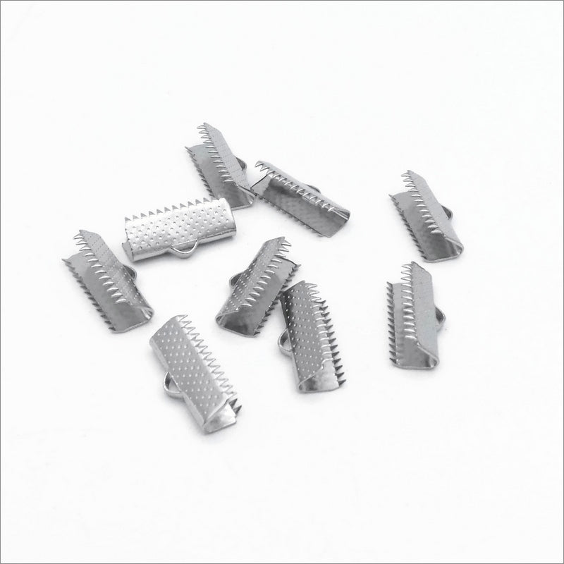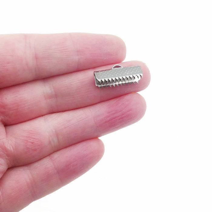 20 Stainless Steel 20mm Ribbon Crimp Ends