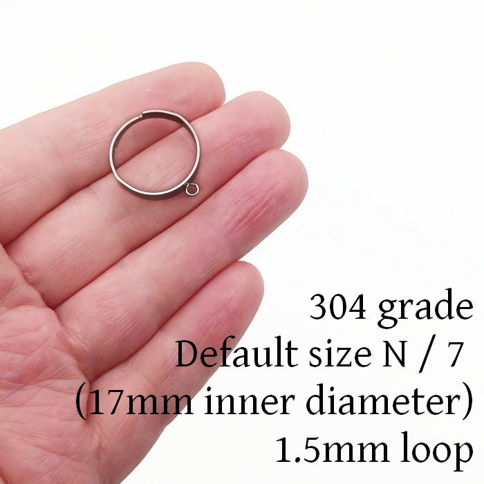 Ten stainless steel ring blanks with a soldered loop, great for hand flowers, or add other elements like charms or chain