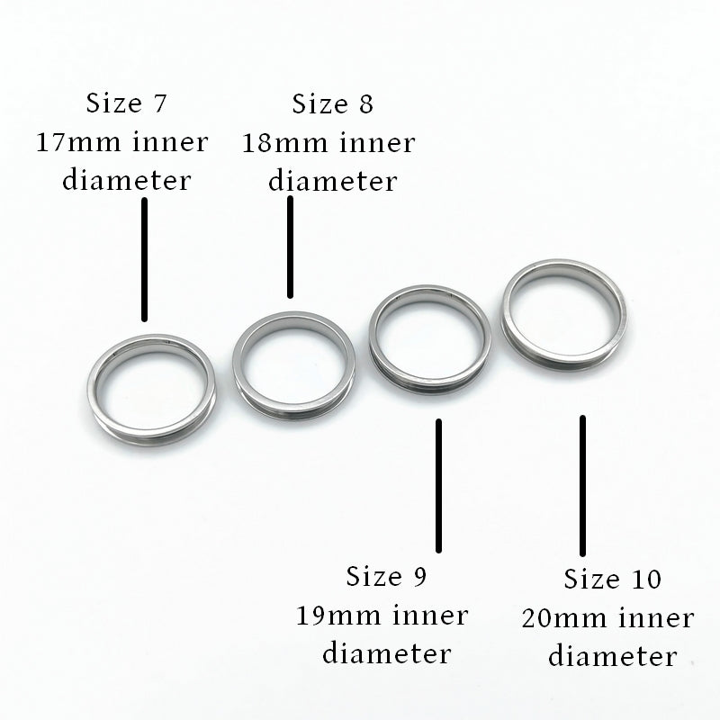 A set of four inlay ring blanks - one of each listed size - with a 2.5mm wide inlay.