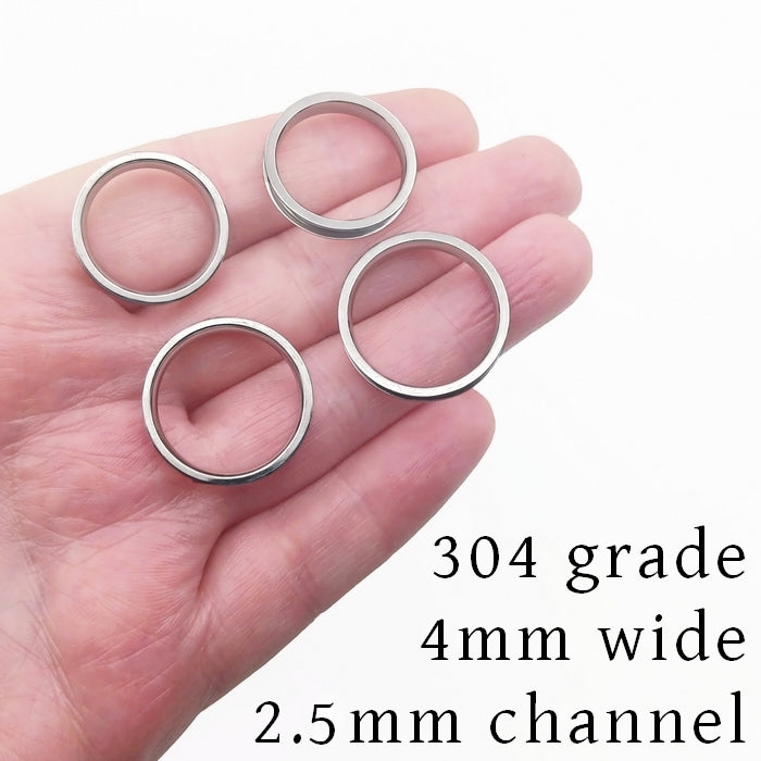Set of 4 Stainless Steel 2.5mm Channel Inlay Ring Blanks