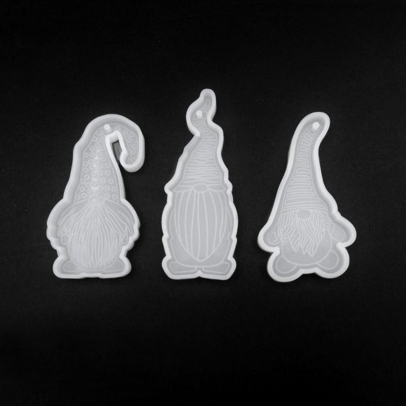 A set of three silicone dwarf or gnome moulds, each one with a unique character design.