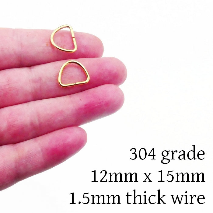 25 machine cut stainless steel jump rings, electroplated for a durable yellow gold tone finish.