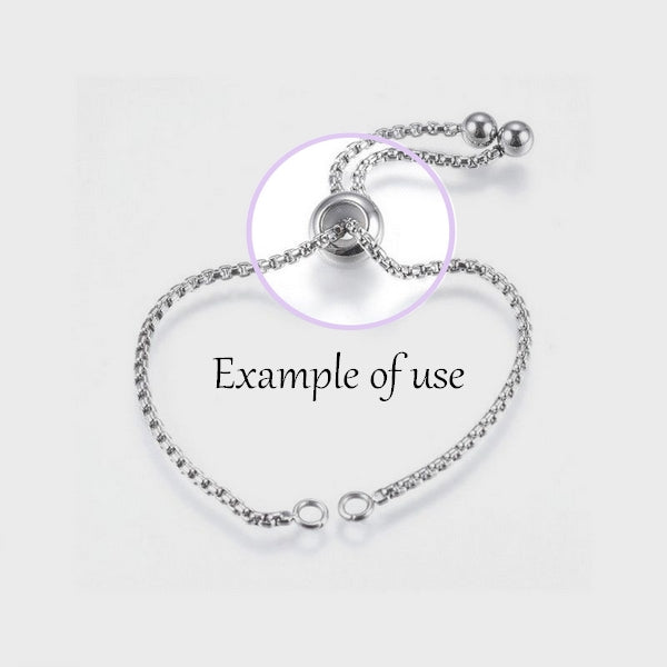 Ten stainless steel rondelle / disc beads with white rubber inserts, perfect for creating your own adjustable jewellery.