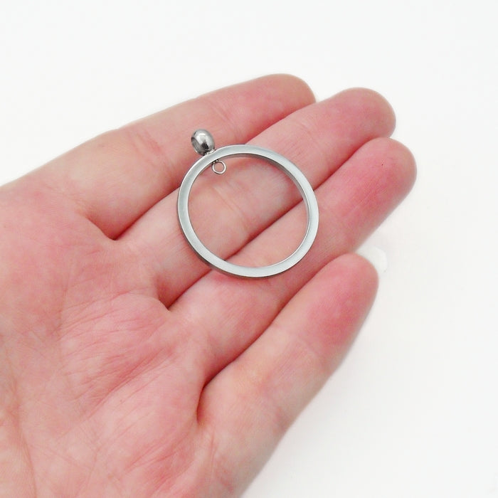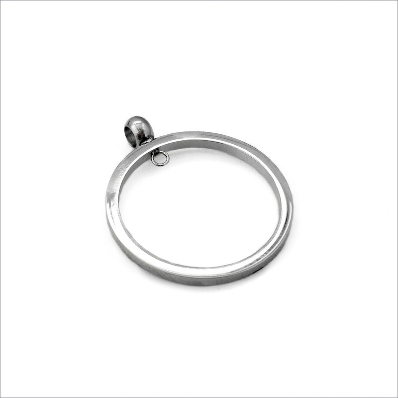 A premium quality round pendant frame, with a soldered bail loop on the top, and a smaller loop on the inside of the frame to attach beads, charms or other components. These have a highly polished, mirror finish.
