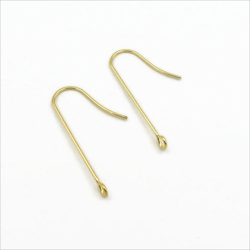 15 pairs of surgical grade stainless steel wire ear wires, with a long drop for dangle earrings, and electoplated for a durable gold tone finish.