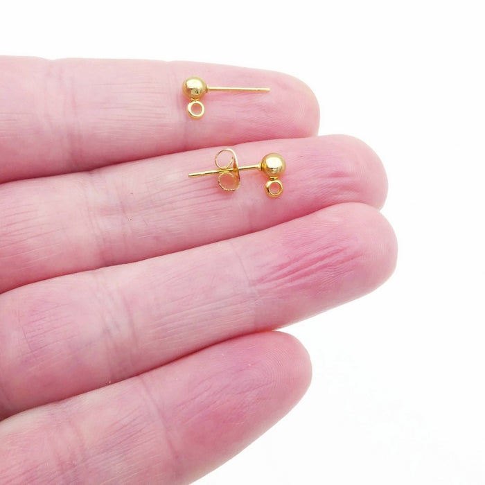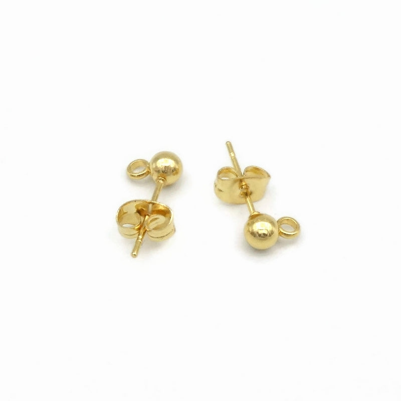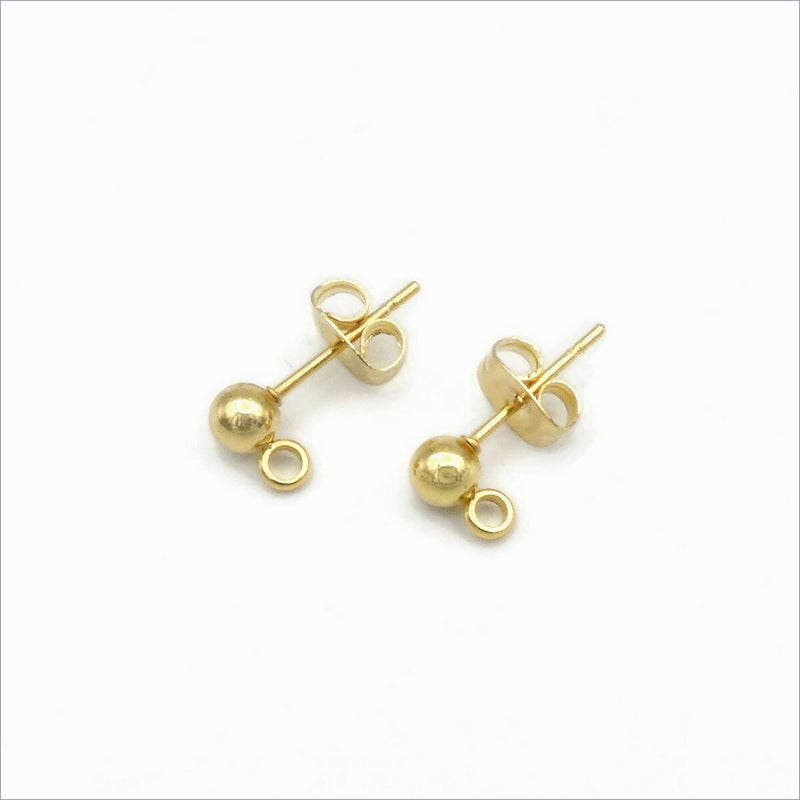 10 Pairs Gold Tone Stainless Steel 4mm Ball Stud Earrings with Side Facing Loop